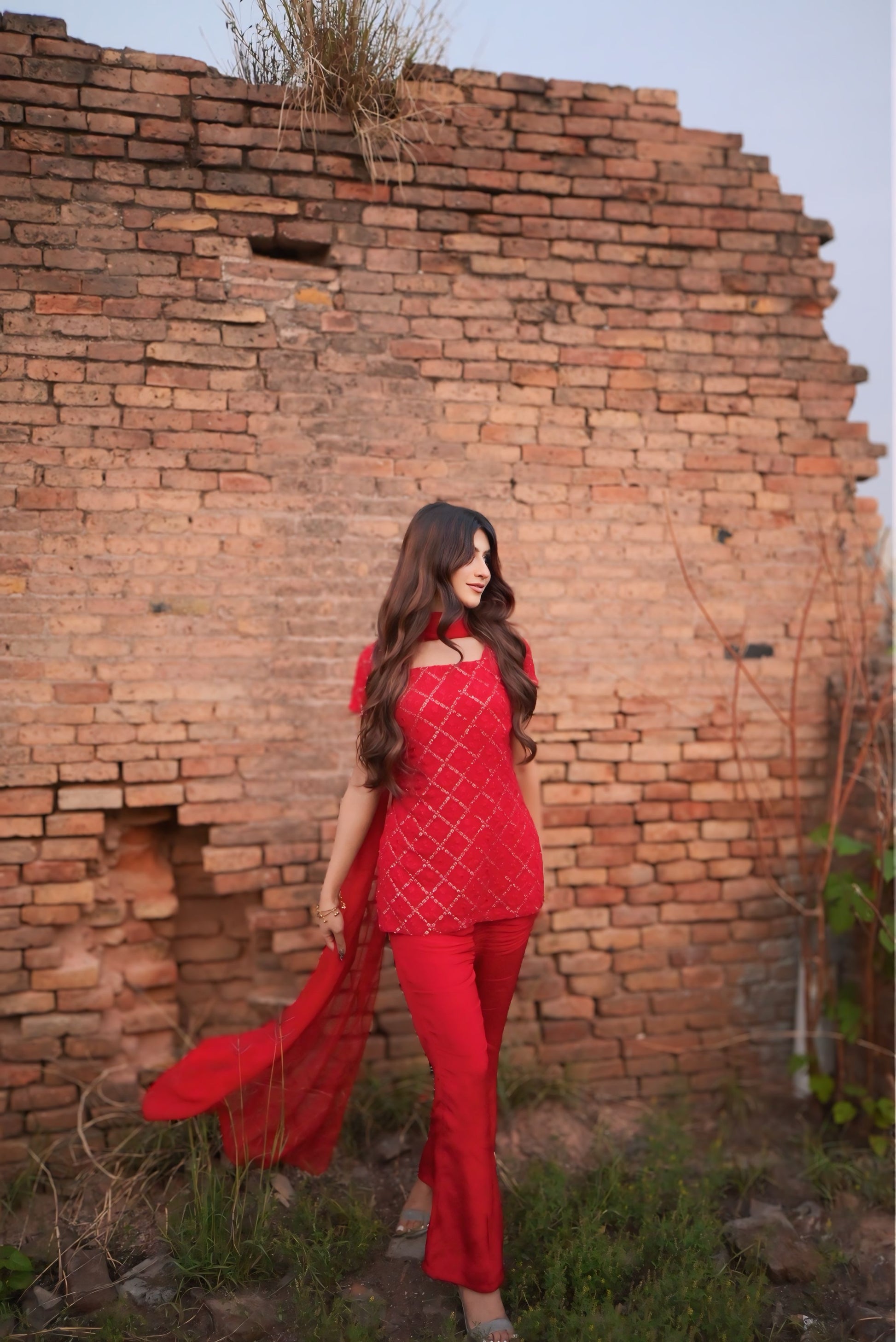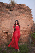 This outfit is a love letter to 90s silhouettes—simple, striking, and effortlessly graceful.From the structured kurti to the flowing trousers, it’s a masterclass in monochrome. Classic vibes, modern energy."